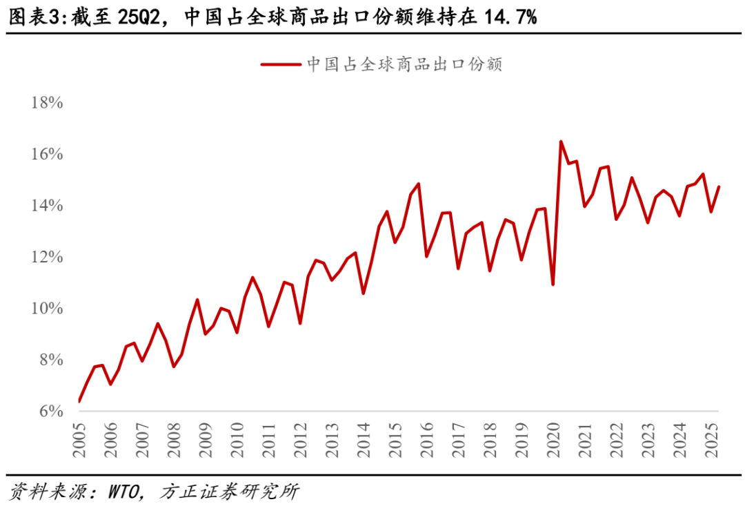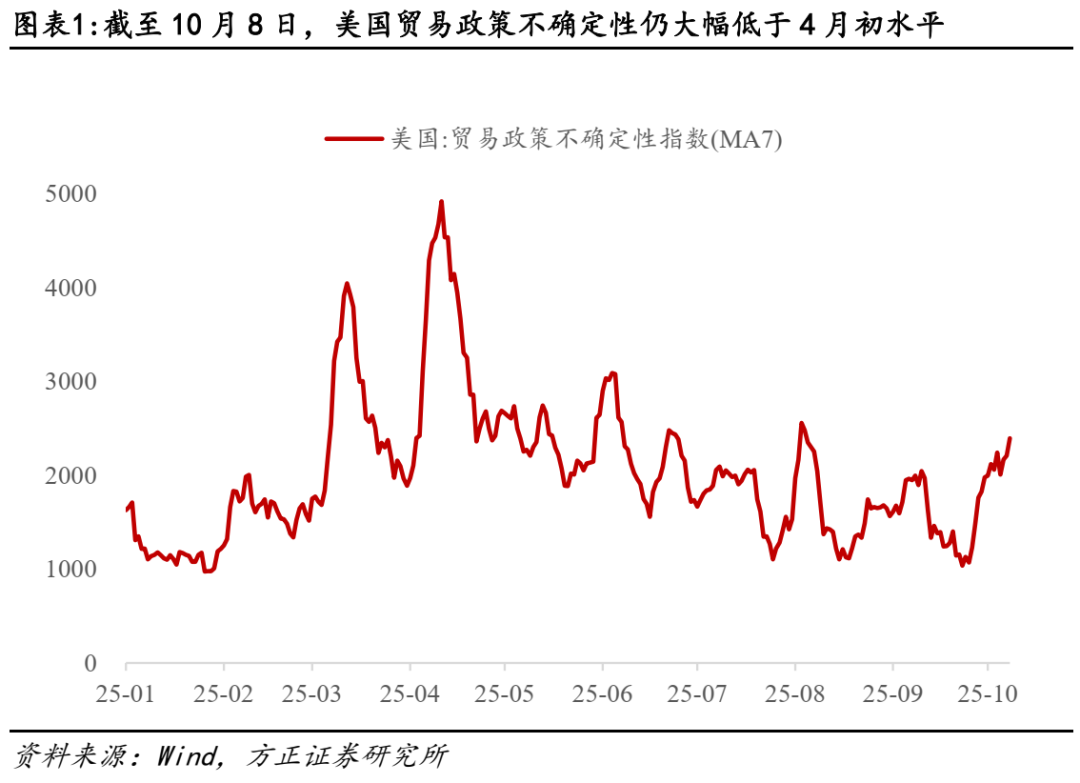新一轮关税升级对中美双方均带来冲击,但后续谈判达成共识的概率仍高:(1)美国面临通胀与政府关门压力:截至8月,美国CPI同比2.9%,关税对商品价格的影响预计在Q4将持续体现。而10月初开始的政府关门,使得港口效率进一步下降,对商品物流带来扰动。此外,最高法院将于11月5日审理特朗普政府实施全球关税的合法性,若认定特朗普301关税违宪,将对其关税政策带来重大打击;(2)对中国而言,加征100%关税意味着贸易停滞:截至7月底,美国对中国商品平均关税税率为40.4%,若加征100%则提升至140.4%,略低于4月贸易战中最高的156%理论值,但等同于中美间贸易再度陷入停滞,对中国出口同样带来压力。