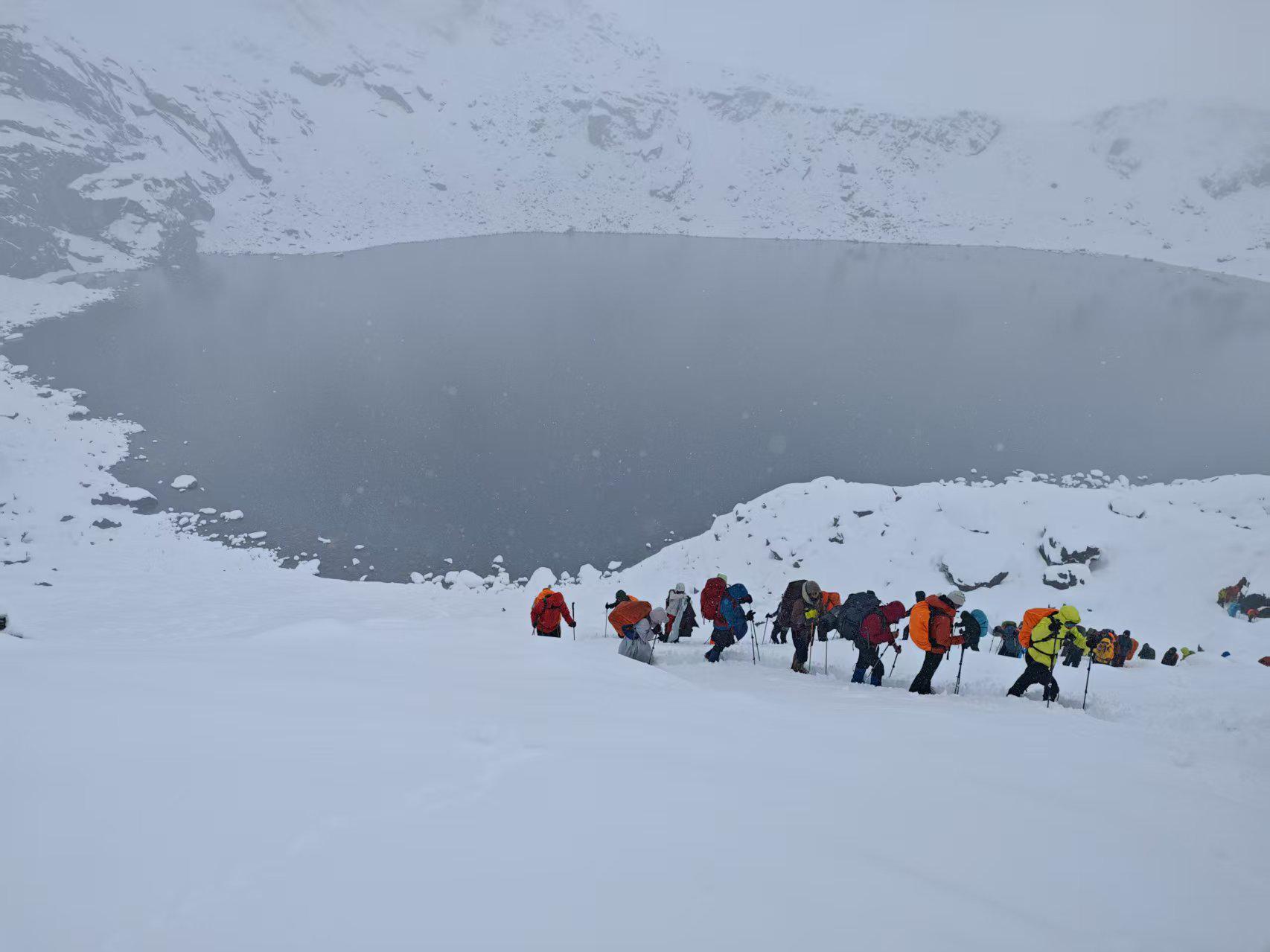 大雪来袭那天,恰好是海子所带商业徒步团的行程第三日,团队当时正前往海拔约4500米的汤湘营地。