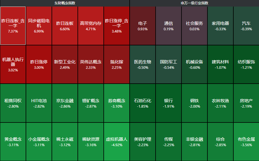 分行业来看,电子、通信、社会服务等行业领涨,有色金属、综合、非银金融、传媒、美容护理等行业领跌。