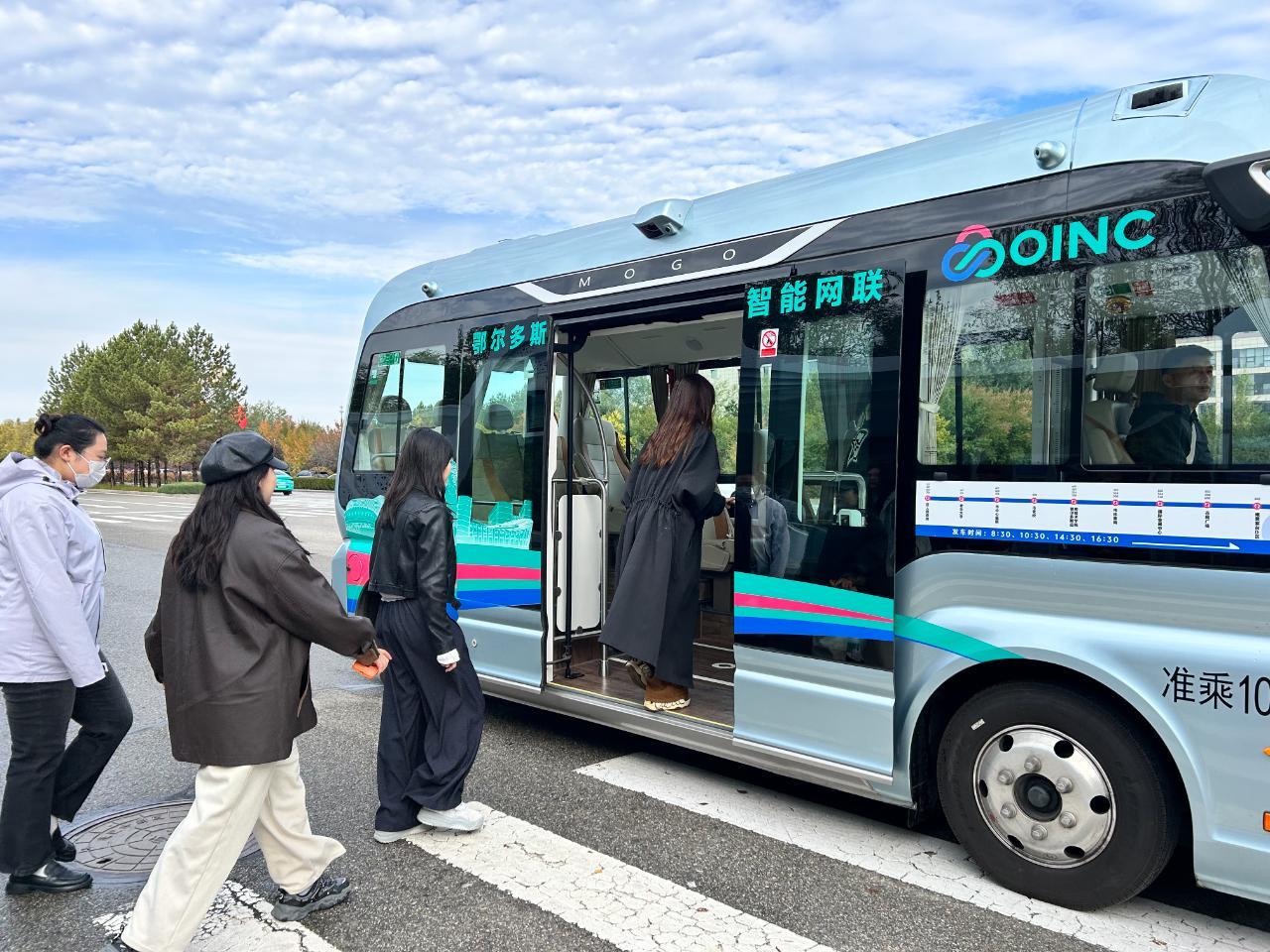 返回城区的路上,一辆‘无人驾驶’公交车静静停靠在站台。顶部的传感器像几个小巧的‘帽子’,车内凉爽安静,与普通公交无异。‘能自己判断红绿灯吗?’记者问。‘能!这车算得准,从来不抢灯。’智能网联汽车示范区工作人员回答。