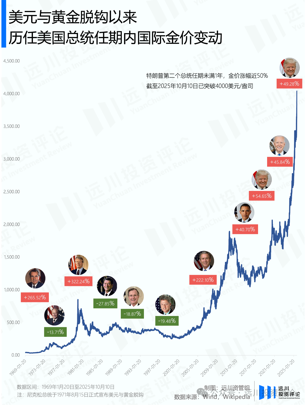 随着9月以来金价的持续突破,加码金价目标的机构不在少数。美国银行首席投资策略师Michael Hartnett更是在近日表示:“历史不能完全预示未来,但过去四轮牛市中黄金平均涨幅约为43个月内上涨300%,这意味着到明年春天黄金价格将达到6000美元。”