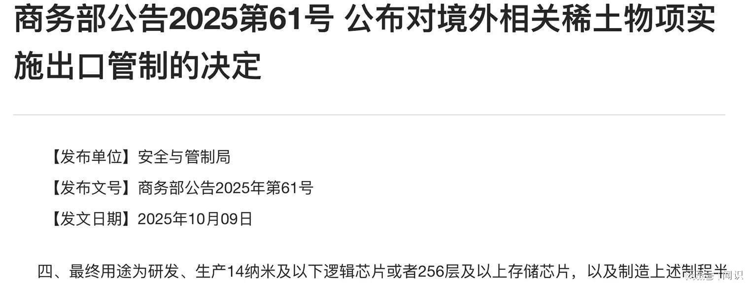 对于这种蛮横行为,中方在9月30日荷兰发布指令正式下手后,迅速作出了反应。10月9日,中方就发布了稀土第61号令、第62号令,实现了对芯片产业、芯片设备使用中国稀土的精准管制。