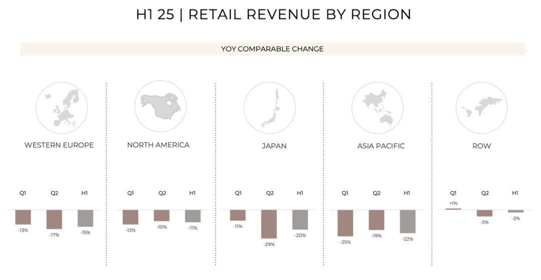图:2025H1开云集团各地区市场收入同比变化;资料来源:公司财报,36氪
