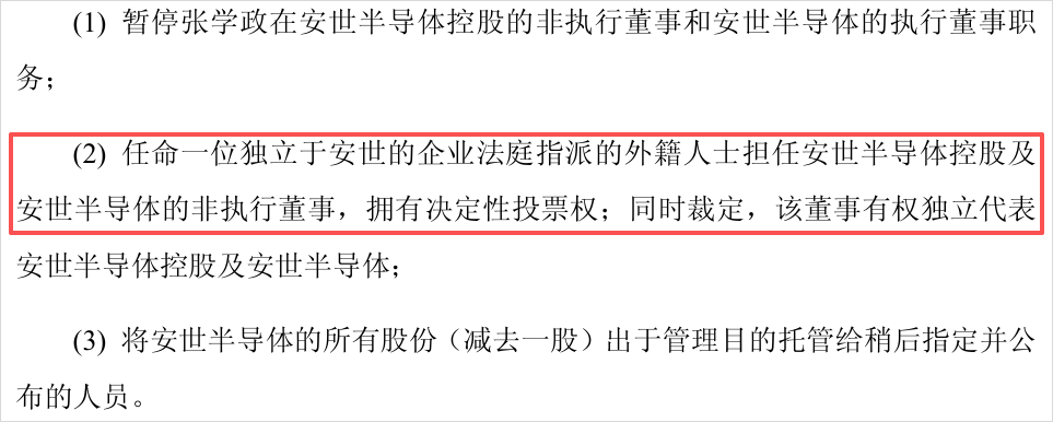 即使在开了口头听证会后,荷兰方面还追加了一条措施:任命一名独立于安世的企业法庭指派的外籍人士担任安世半导体的非执行董事,拥有决定性投票权,且有权独立代表安世。