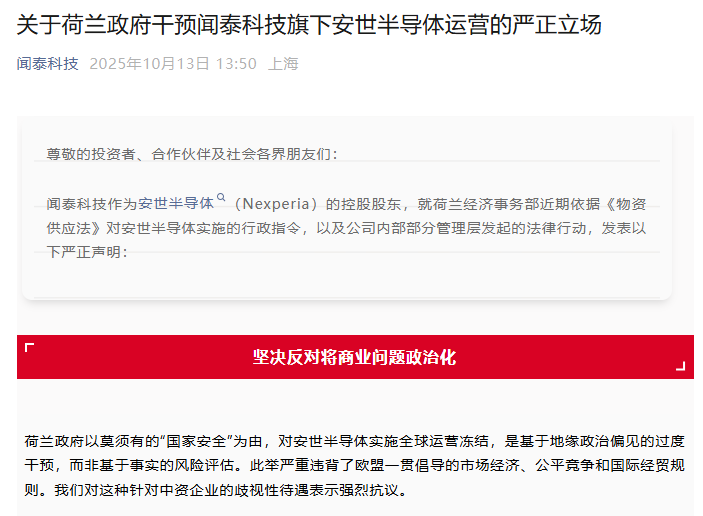 昨晚,半导体公司闻泰科技发布复牌公告,并公布了一则坏消息:三名外籍高管联手荷兰政府,要求全球30个主体的资产、知识产权、业务及人员不得进行任何调整,有效期为一年。