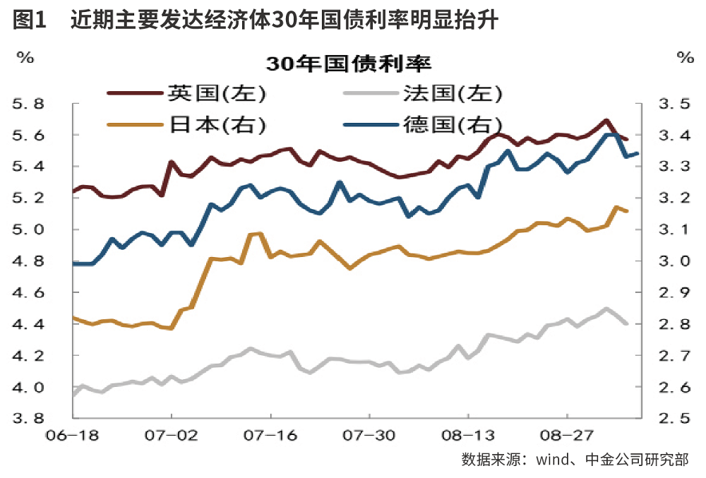近日,英国30年期国债收益率一度飙升至5.73%,创下1998年5月以来的最高水平;德国30年期国债收益率升至3.43%,为2011年7月以来最高水平;法国30年期收益率逼近4.5%,是2009年以来的最高水平;日本30年期国债收益率则创下历史新高,20年期国债收益率也攀升至1999年以来的最高点。