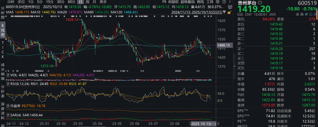 值得注意的是,在2025年A股结构性牛市背景下,茅台股价年内累计跌幅已超5%,与消费板块整体回暖态势形成鲜明对比。这种异常表现引发投资者对'价值洼地'的深度思考。
