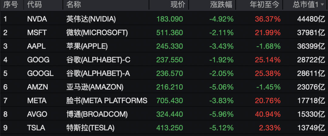 上周五,特朗普在社交媒体发布强硬言论后,美股三大股指集体跳水,纳斯达克指数单日暴跌3.56%,七大科技巨头市值蒸发5.5万亿元,上演“黑色星期五”惨剧。