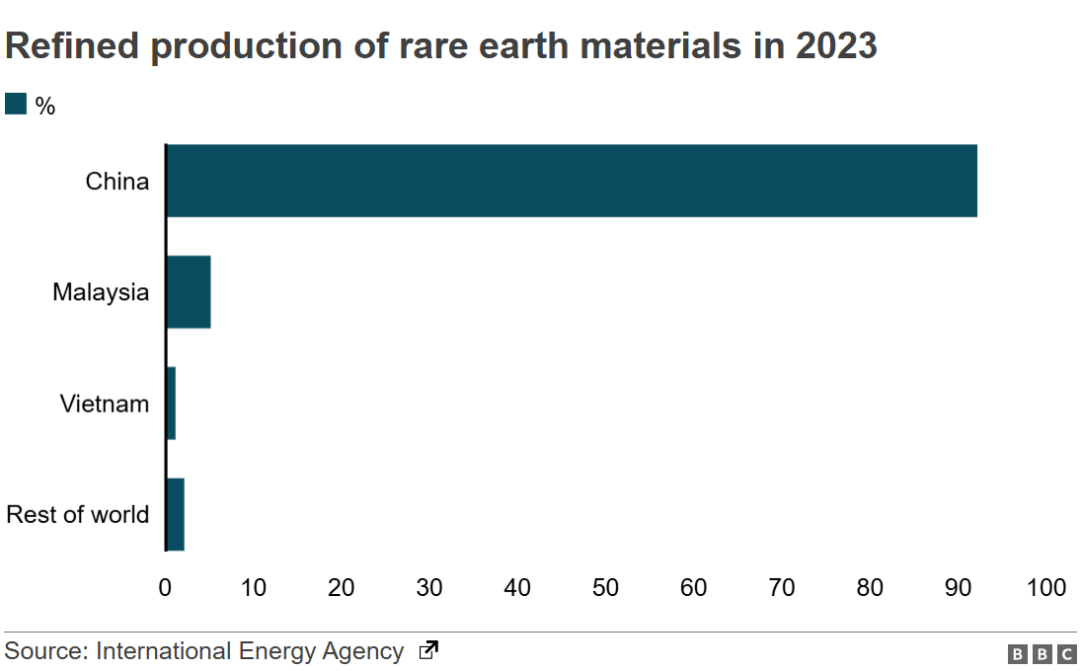 美国国防情报公司报告显示,其1900余种武器系统关键矿产依赖中国供应。稀土管控直接卡住西方高端制造的“七寸”,成为重要的战略筹码。