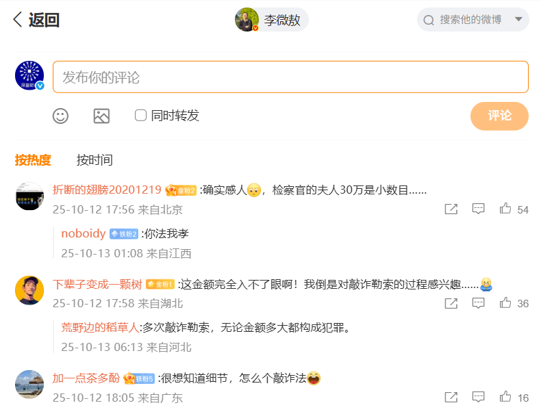 从李微敖披露的信息来看,这起案件涉及的金额确实远低于社会公众对于“敲诈勒索”罪的普遍印象。通常,人们认为敲诈勒索案件涉及的金额往往较大,但此次案件中的非法所得却少得可怜,这无疑引发了公众的广泛讨论和关注。