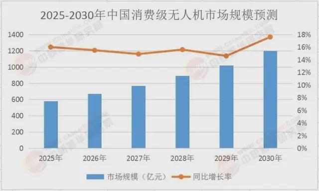 中研普华产业研究院数据显示,中国消费级无人机市场规模的增速从2020年的45%骤降至2024年的18%,降幅超六成。据中商产业研究院预测,中国消费级无人机市场规模的增速仍在接下来几年持续走低,无人机市场的存量竞争已然到来。