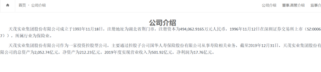 2015年,天茂集团迎来其发展历程中最受关注的一次战略转型:通过定向增发募资86亿元,收购国华人寿51%股权,正式切入保险行业。此番跨界决策,使公司从传统化工企业蜕变为“保险+化工”双主业平台,并逐渐将业务重心向保险领域倾斜。