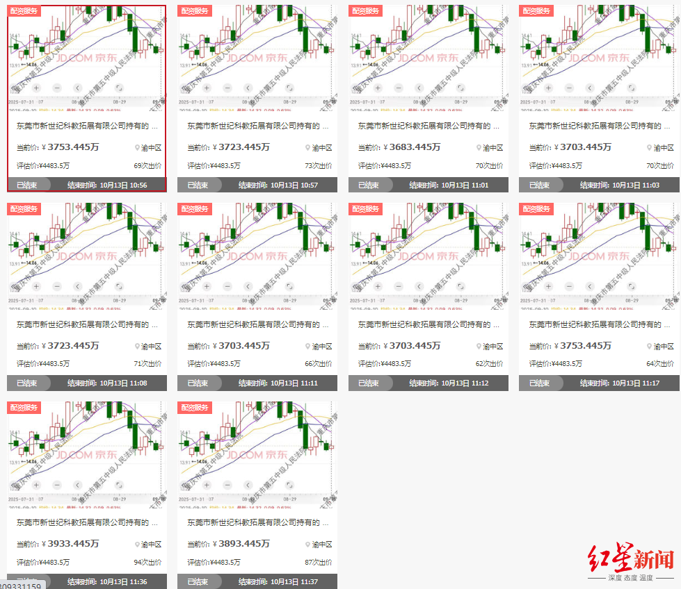 根据公告,此次股权拍卖将新世纪公司持有的3000万股股份平均拆分成了10个标的,每个标的300万股,共吸引了75人次报名参拍。
