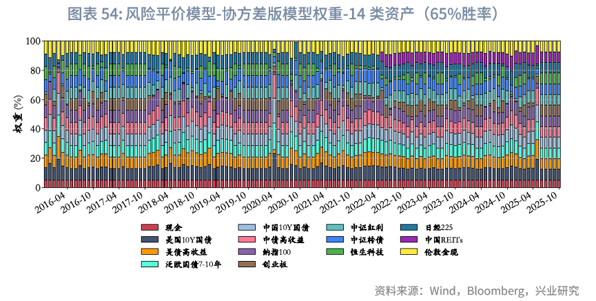 风险平价模型优点在于能够显著降低单一资产对组合的冲击,提高夏普比率,并在历史上展现出稳健的回撤控制能力。然而,该方法未显式纳入收益率预期,如果某一时期某类资产的预期收益偏低,风险平价仍可能给予其较高权重,从而导致潜在的机会成本。基于这些特点,风险平价更适合:1)追求稳健的养老金、银行理财子公司;2)具备较强单一资产超额获取能力的量化私募;3)缺乏预测能力的个人投资者;4)资金体量庞大、不支持高频择时的机构(如社保基金、养老金)。