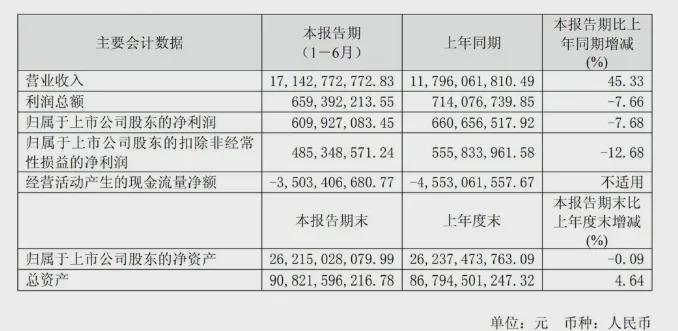 今年上半年,公司虽然实现营业收入为171.43亿元,同比增长45.33%,但归母净利润却同比下降7.68%,为6.1亿元;基本每股收益0.27元。报告期内,公司实现风机对外销售8.10GW,风机新增订单13.39GW,风机及相关配件销售收入124.80亿元。