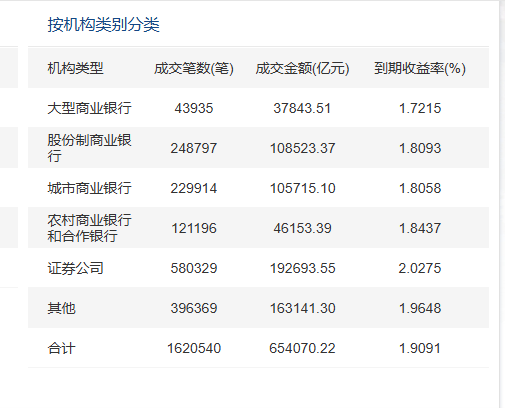 从成交数据看,9月国、股、城、农商行现券成交金额达146,366.88亿元。其中,大行现券买卖到期收益率为1.7215%,股份行为1.8093%,城商行为1.8058%,农商行为1.8437%,证券公司更高达2.0275%。这一收益率水平仅次于今年3月,当时大行、股份行、城商行、农商行和证券公司的现券买卖到期收益率分别为1.8656%、1.8719%、1.9062%、1.8757%和2.0586%。