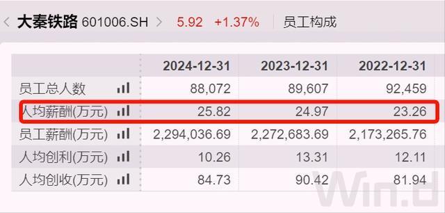 截至2024年末,大秦铁路职工总数已超过8.8万人。去年,公司人均创利10.3万元,人均税前薪酬达到25.6万元,比2023年增加了大约8500元,显示出公司对员工福利的重视。