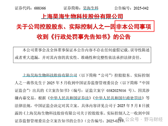 时隔四个多月,“医美三剑客”之一昊海生科(6826.HK、688366.SH)实控人内幕交易案迎来新进展。9月16日晚,公司公告称实控人蒋伟已收到中国证监会《行政处罚事先告知书》,并强调“处罚主体为蒋伟个人,与公司无关”。
