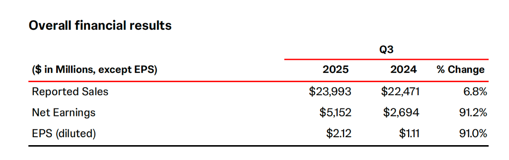 周二美股盘前,强生正式发布三季度财务数据,核心指标表现亮眼: