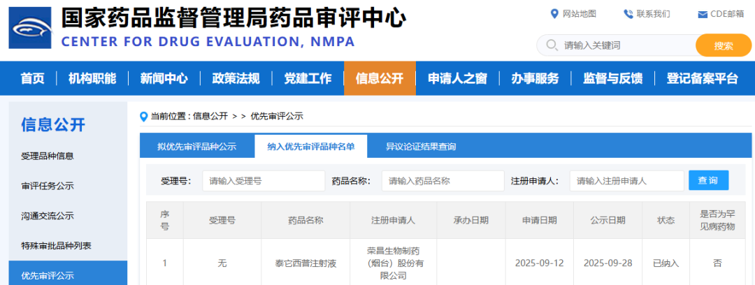 ▲10月11日,泰它西普IgA肾病适应症被CDE纳入优先审评