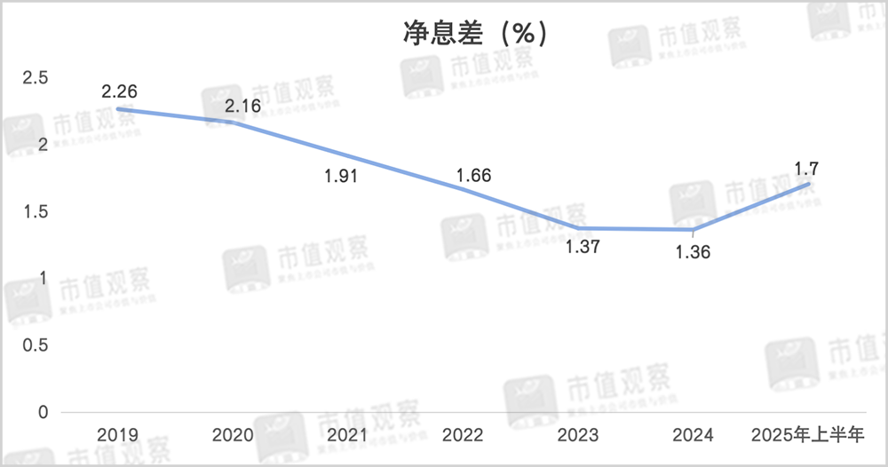 以商业银行传统息差业务为例,上半年西安银行利息净收入同比增长59.92%至38.98亿,推动净息差显著回暖至1.7%,较2024年的1.36%明显提升。