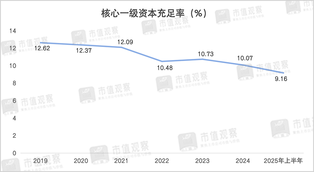随着资产规模快速增长,西安银行也面临资本金压力。上半年核心一级资本充足率为9.16%,较2021年前超12%的水平明显下滑。