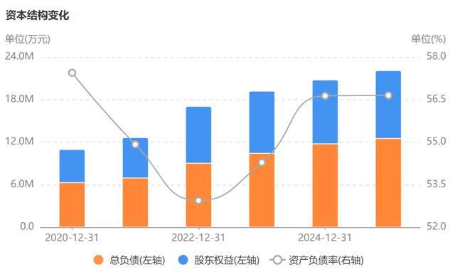 大规模投资是特变电工战略布局的关键。近三年累计投资超450亿元,主要用于硅料、煤炭及氧化铝项目。其中年产240万吨氧化铝项目虽不直接盈利,但可满足电力行业对铝材的需求,形成产业链闭环。这种“基础输变电+能源联合经营”模式,需承担较高财务压力——近三年归母净利润合计307亿元,远低于投资规模,导致资产负债率升至56%以上。