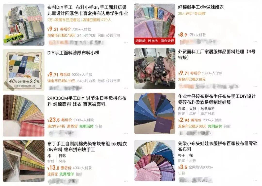 ▲ 购物平台上有很多专卖零碎布料的商家。图 / 淘宝截图