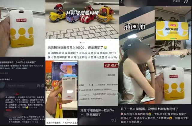 虚假离职博主的受害者不仅是职场小白,还有被盗图的员工。2023年从泡泡玛特离职的阿林发现,网上大量离职博主盗用其工牌照片发布‘离职收徒帖’。尽管他多次发帖打假、私信删除,但盗图者仍源源不断。