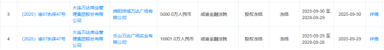 值得注意的是,这并非大连万达商管集团首次遭遇股权冻结。就在不久前的9月29日及30日,天眼查信息显示,该公司新增两则股权冻结信息,涉及乐山万达广场实业有限公司和绵阳涪城万达广场有限公司,冻结股权数额分别约为1.88亿元和5000万元,合计高达2.38亿元。冻结期限均为三年,执行法院同样为成渝金融法院。