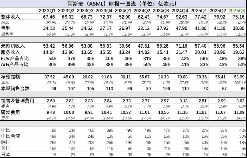 图:ASML 2025年Q3财报核心数据(来源:企业财报,锦缎研究院整理)