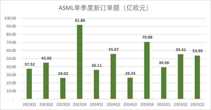 三季度新订单54亿欧元,高于市场预期的49.7亿欧元。此前市场担忧中国市场囤货节奏放缓及关税影响,但AI资本支出驱动力超预期,尤其是存储行业表现强劲。