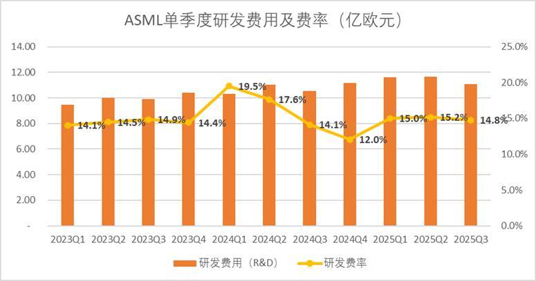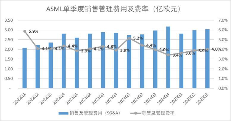 图:ASML单季度费用及费率情况(来源:企业财报,锦缎研究院整理)