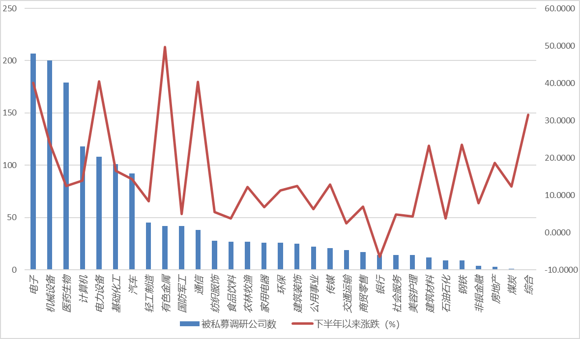那么,今年下半年以来,私募都在积极调研哪些方向呢?