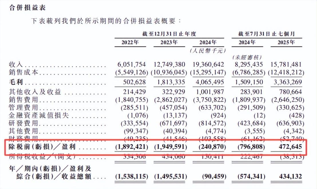 数据层面,岚图汽车2022年至2024年销量分别为1.94万辆、5.03万辆和8.01万辆,2025年前七个月销量达6.67万辆。毛利率从2022年的8.3%上升至2024年度的21%,2025年前七个月小幅提高至21.3%。业绩方面,2022年至2024年分别实现收入60.52亿元、127.5亿元和193.6亿元,同期亏损分别为15.38亿元、14.96亿元和9045万元,2025年前7个月则录得盈利4.34亿元。