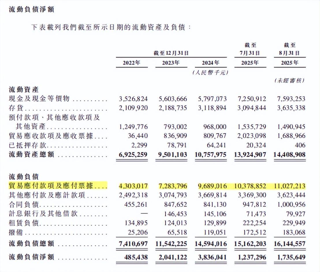此外,岚图的付款压力也不容忽视。2025年前7个月,岚图经营现金流净额为14.2亿元,较2024年同期的-12.4亿元显著改善。但资产负债表显示,经营现金流改善背后,应付款项大增是关键因素之一。2024年底,岚图贸易应付款项及应付票据为96.9亿元,较2023年末多出20多亿,是2022年底的两倍以上。2025年7月底,这一数据突破百亿大关,达到103.79亿元,8月底更是飙升至110.27亿元。