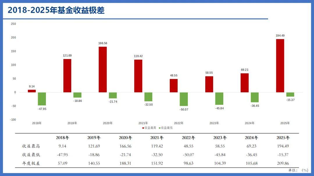 本轮牛市行情,对投资者的资产配置结构、标的选择的要求是比较高的,今年以来表现最好的基金收益为194.49%,而表现最差的基金亏了15.37%,极差高达209.86%。