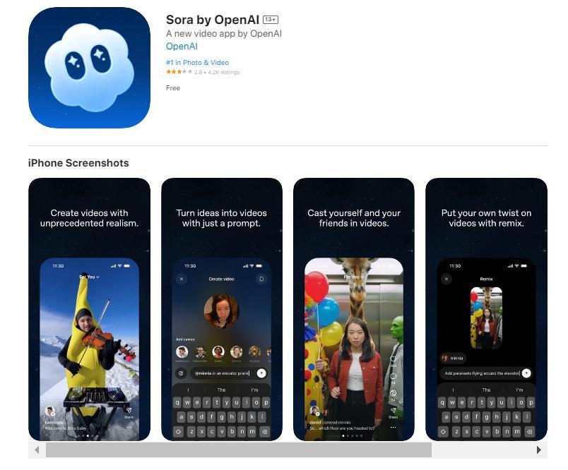 Sora App上线仅四天就登顶苹果美国应用商店免费榜,超越Gemini和ChatGPT,展现出惊人的市场热度。据Appfigures数据,iOS版上线两天下载量达16.4万次,首发下载量5.6万次。