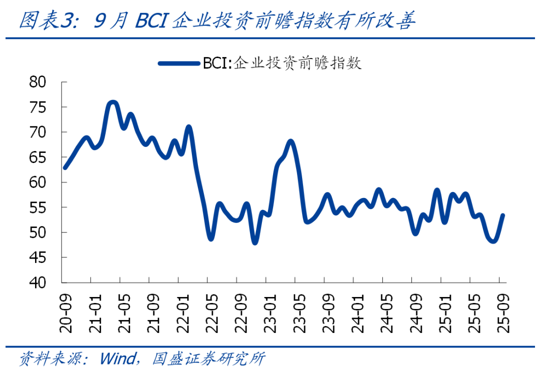 >企业短贷同比大幅多增,但票据冲量特征缓解,中长期贷款连续3个月同比少增,财政发力效果可能不及预期。短期融资方面,企业短期贷款增加7100亿、同比多增2500亿,票据融资减少4026亿、同比少增4712亿。中长期贷款新增9100亿,同比少增500亿,指向企业投资意愿仍然偏弱,同期BCI企业投资前瞻指数有所抬升、后续能否拉动中长贷有待观察。此外,除实体企业外,财政发力带动相关配套融资改善也是中长期贷款的重要影响变量,当前企业中长期贷款连续3个月同比少增,也一定程度指向财政发力效果不及预期,实际配套融资未有改善。