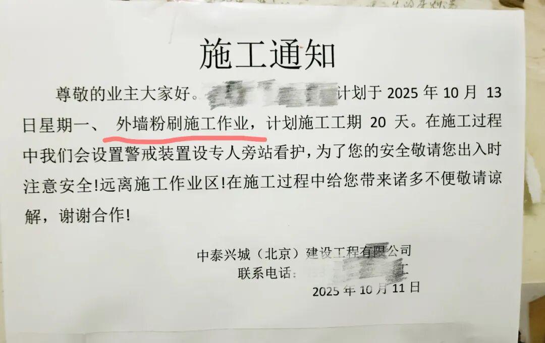 比如,Lisa在北京租的是90年代的老旧单元楼,最近也贴出了施工告示,开始重新粉刷外墙。
