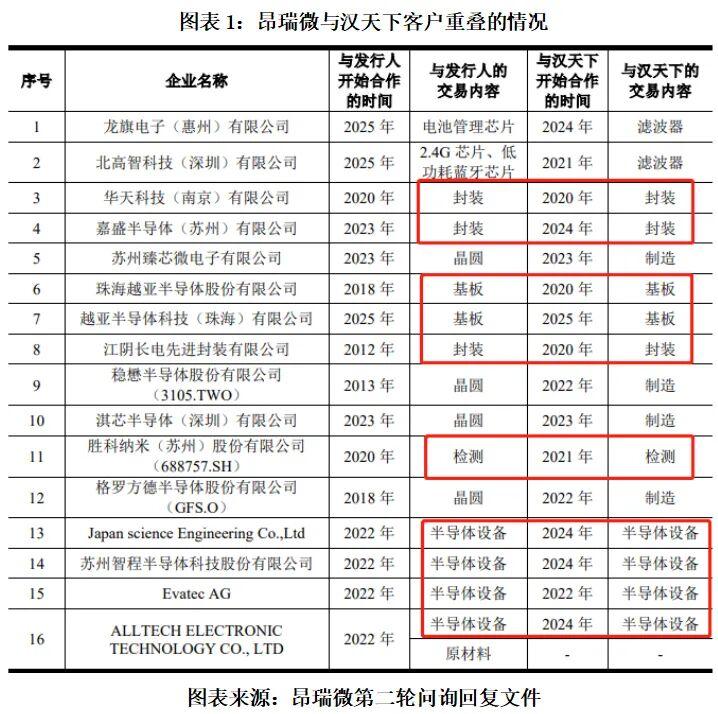 除了研发产品相似外,昂瑞微与杨清华控制的主体还存在重叠的客户、供应商。第二轮问询回复文件显示,双方重叠的客户共计16家,其中多家客户向双方采购同一类型的产品。对于这种情况,昂瑞微未作详细解释,仅表示是基于客户自身经营需求。