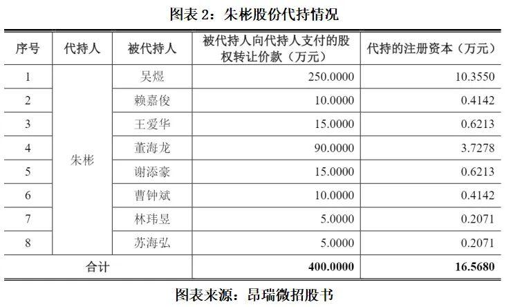在此前已披露的股权代持中,朱彬的股份代持问题也引发了广泛关注。招股书显示,朱彬受让的注册资本中部分系为越秀产业基金多名员工代持。对于代持原因,招股书解释称是由于项目投资时间紧张,当时未为跟投员工设立专门的投资平台,因此统一以朱彬名义代持。