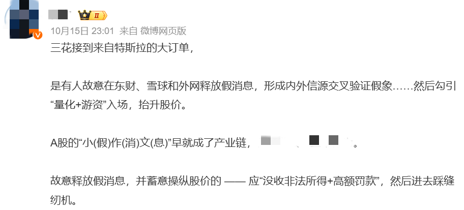 在原帖被海外科技大号引用后,有人又把它搬运回了国内,“小作文”随之发酵。当时有雪球网友发帖,援引一则发布于9月22日的帖子(现已被作者删除),称“9月消息再发一遍,这就是一个屠幸场”。尽管如此,市场情绪已经被点燃。