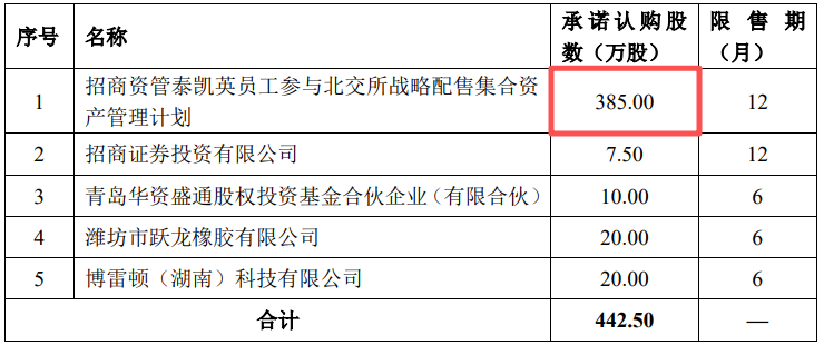 不过,话又说回来了,尽管有明显改观,这次的分配架构也难说十全十美到能够屏蔽市场上全部质疑。投资者能够看到的最直观的:这员工拿的战配数量也忒多了吧?北交所二级热度好起来没多久,泰凯英员工资管计划的385万股占到442.5万股的足足87%,几乎是自个“包圆”了,占总发行规模接近10%的上限,即在总量砍半的情况下,自己拿的份额“一点也不能少”,这还是战略配售吗?干脆叫“内部员工上市福利红包”得了。