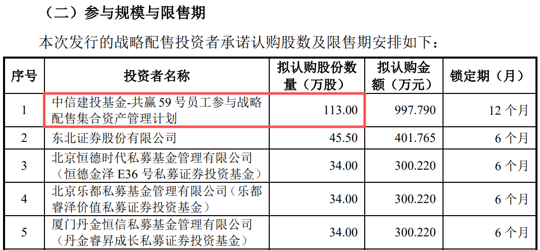 再看具体的战配机构获配名单,较以往大有不同,数量缩减到仅有5家,扫清了一众“来历不明”“问题重重”的私募。仔细来看:①是员工战配、②是保荐券商、③是地方国资、④是上游供应商、⑤是下游大客户。其中④⑤还在《战配专项核查报告》里详细披露了业务往来以及未来方方面面的合作意向。可以说,这张战配名单很好地传达了交易所对市场“三公”原则的坚决拥护,对这波及时捕捉、快速反映、积极应对,应该点赞。