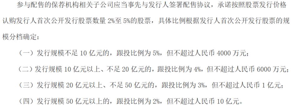 (1)平衡各家的战略配售分配额度,这样才能起到利益一致、认可长期价值、积极发挥战配机构赋能作用的职能,参考科创板券商跟投比例相关制度规定,每家2~5%或是不错的参考。