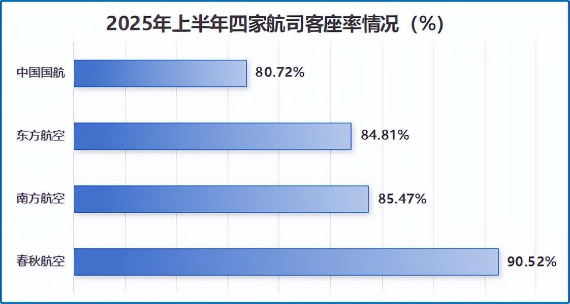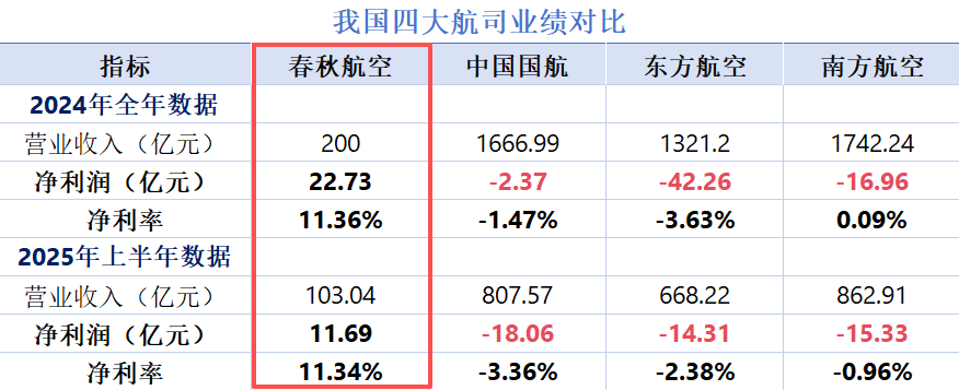 2025年上半年,中国国航、东方航空、南方航空三大航司合计营收超过2300亿元,却集体亏损超47亿元。反观春秋航空,不仅实现净利润11.69亿元,净利率更是超过11%,成为国内最赚钱的航司。
