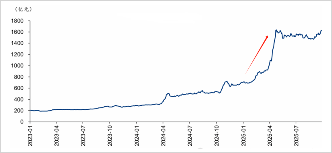 ▲国内黄金ETF总规模走势图,来源:华泰证券