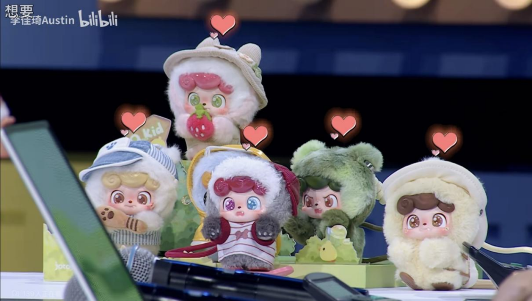 JOTOYS综艺首秀带着的是“萌系一哥”(Q宝无性别,此处为戏称)——2024年推出的自研IP【Q宝】,此次上节目的是两个系列,分别是今年推出的“情绪毛毛怪”和“今天出去玩”系列,前者曾在李佳琦今年的618直播间刷过脸。