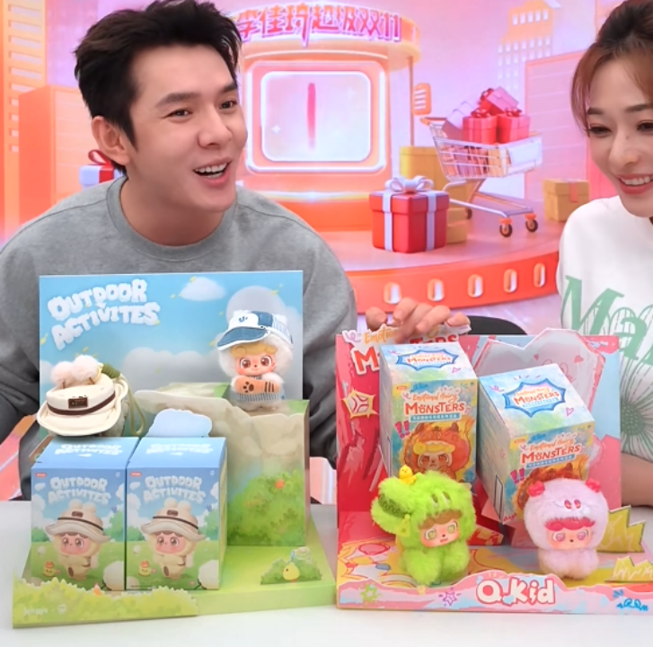 Q宝的当家红人地位给足了王老板自信,所以他自信地展出此次参加大促的价格:毛毛怪系列单个盲盒52.9元,出去玩系列59.9元(两款原价为69元),“后者更贵是因为升级了工艺、增加了配饰”,他在节目里解释道。